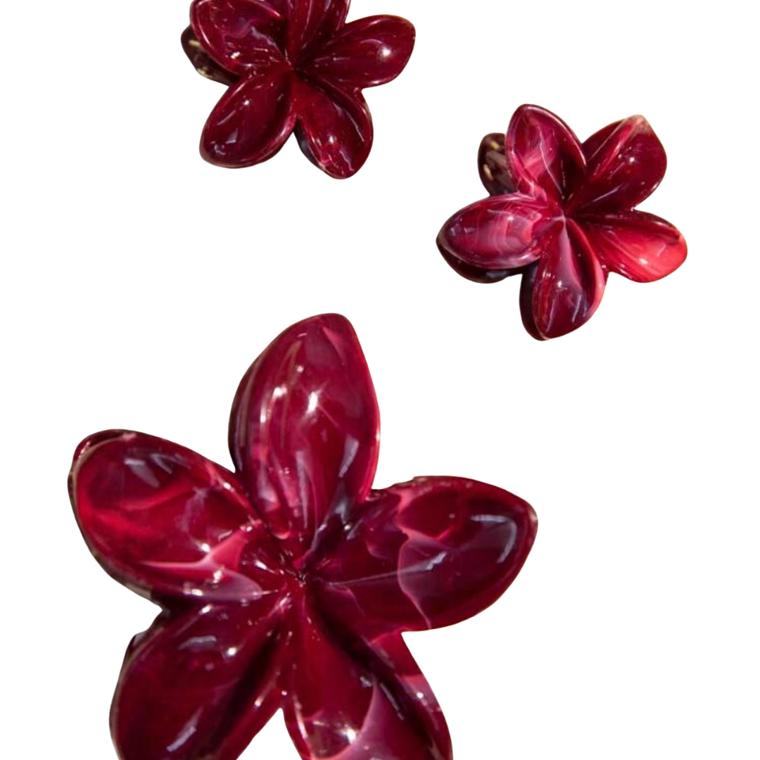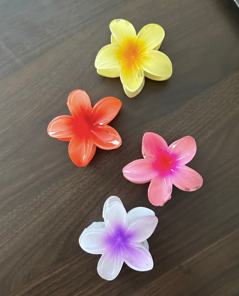 The Plumeria Claw showcases a delicate flower design inspired by plumeria blooms, ideal for keeping your hair secure while adding a stylish, feminine flair.